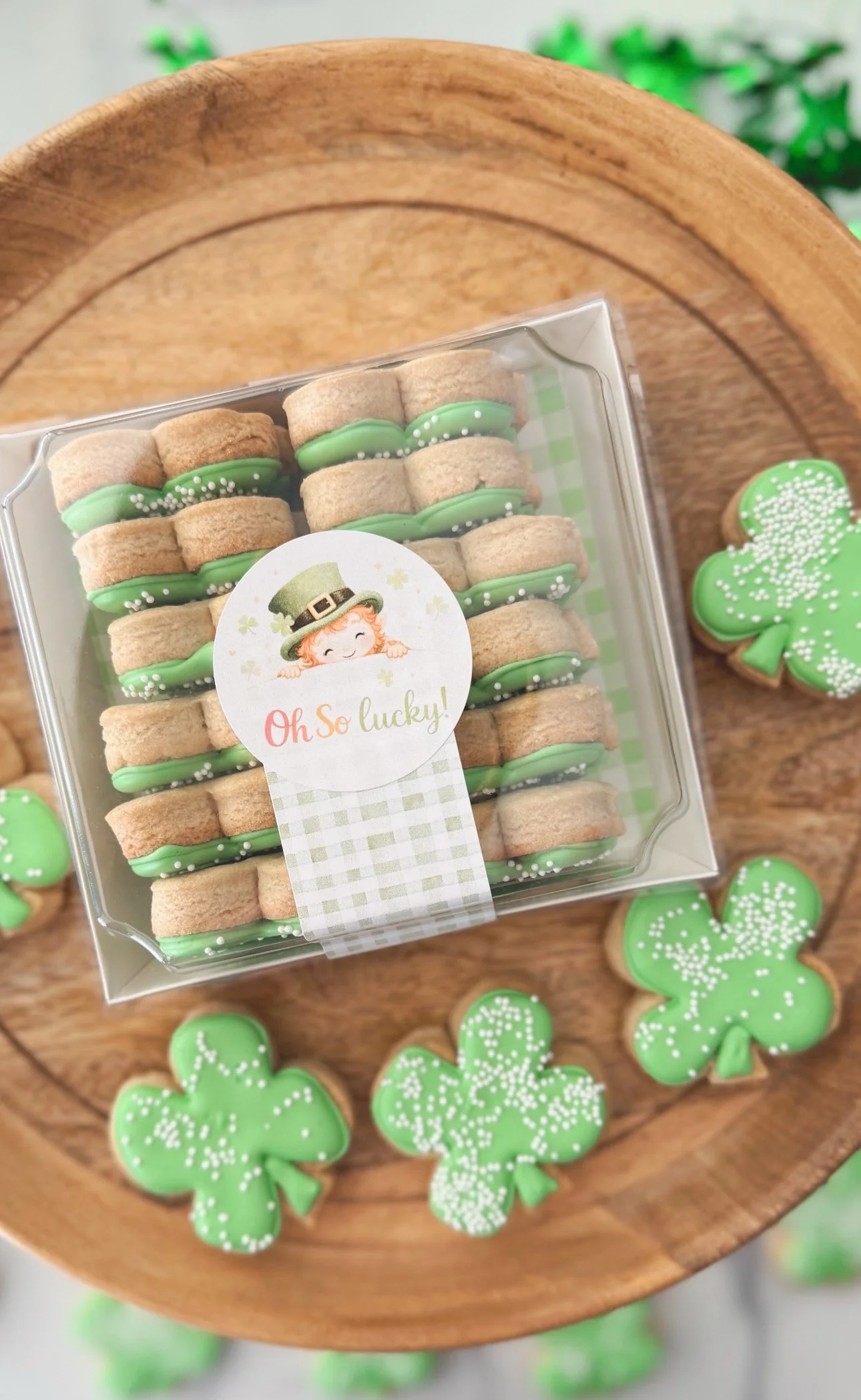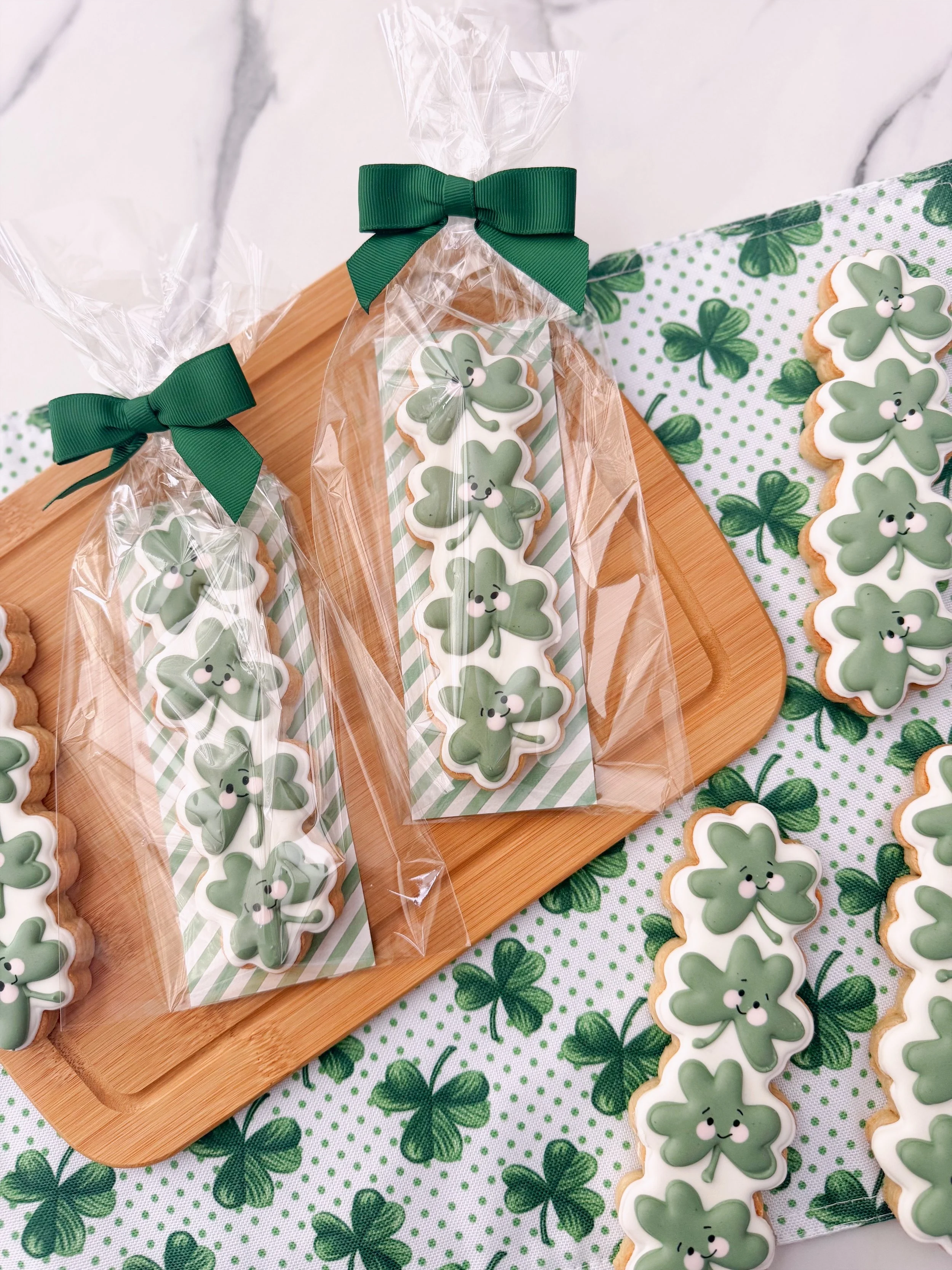 Each Skinny Shamrock includes one hand-decorated 6-inch cookie. Each cookie is lovingly pre-packaged, making it the perfect gift!